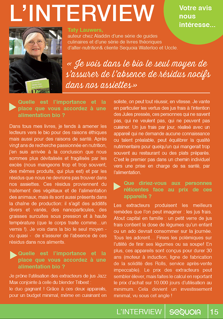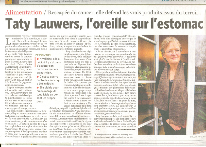 Par mail. T. Je voulais juste vous dire 1000 fois merci pour votre ton original, et votre approche de l'alimentation et de la santé. Je regrette juste que vous manquiez relativement d'audience et restiez dans une sorte d'avant-garde (un comble quand on en appelle à la tradition). Bonne continuation. -Sylvain http://clairetlipide.wordpress.com